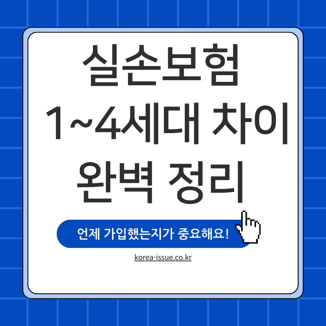 오늘은 실손보험 1~4세대의 주요 특징을 한눈에 보기 쉽게 정리해드릴게요 😊