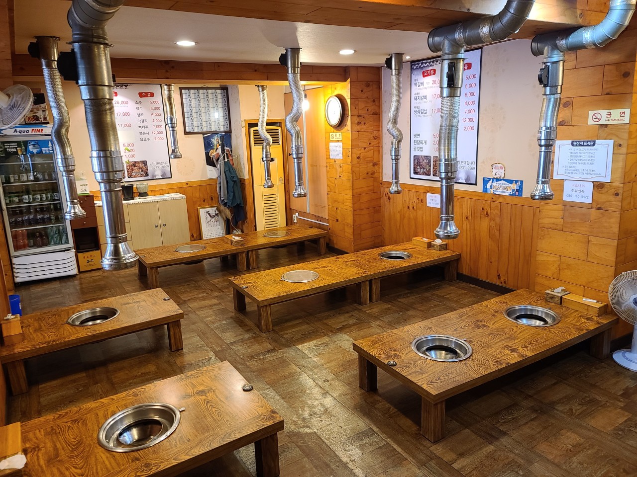 외관은 은은한 전통 느낌이 있고, 가게 앞을 지나갈 때부터 숯불향이 코를 자극해요.