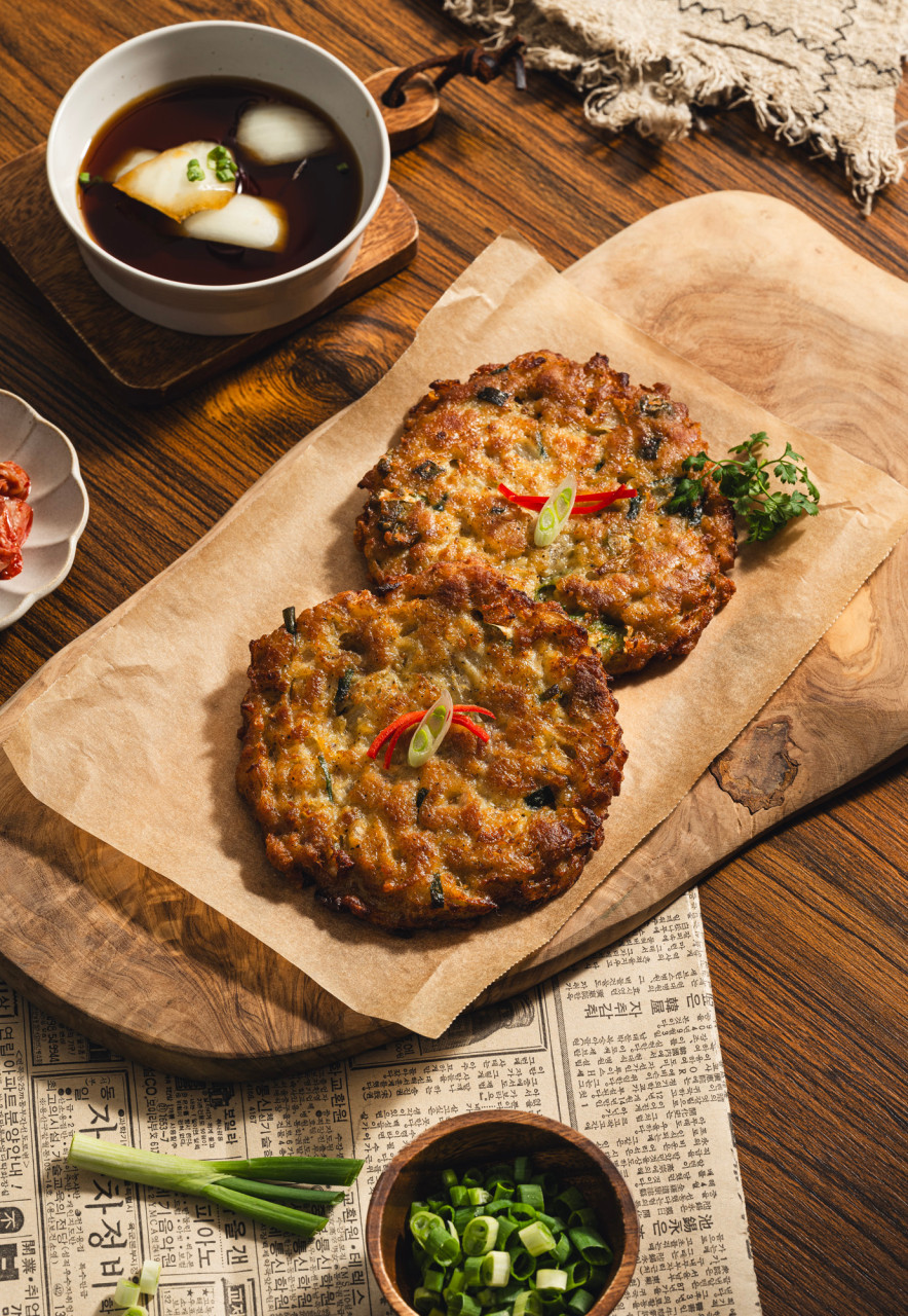 김과 함께 싸 먹으면 감칠맛이 더 살아나요. - 녹두 빈대떡: 고소한 녹두 향이 풍부하고