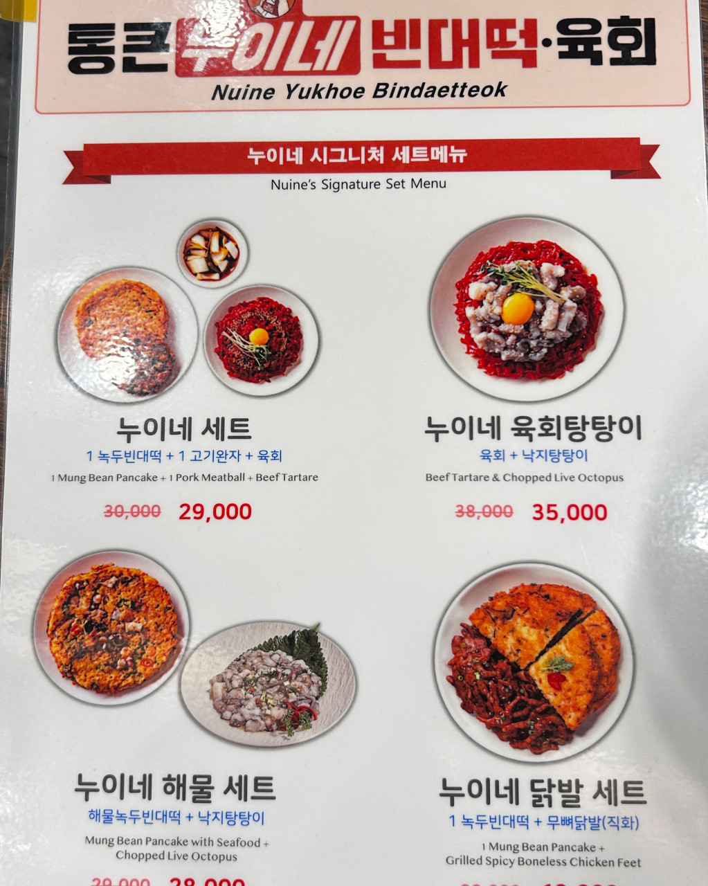 육회, 빈대떡, 닭발, 탕탕이…