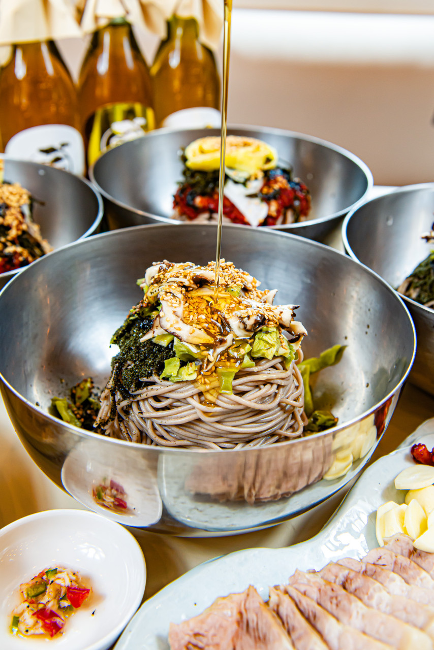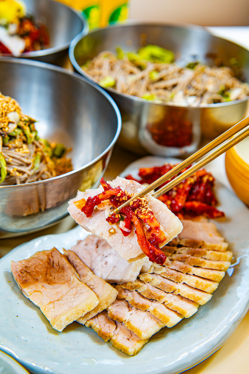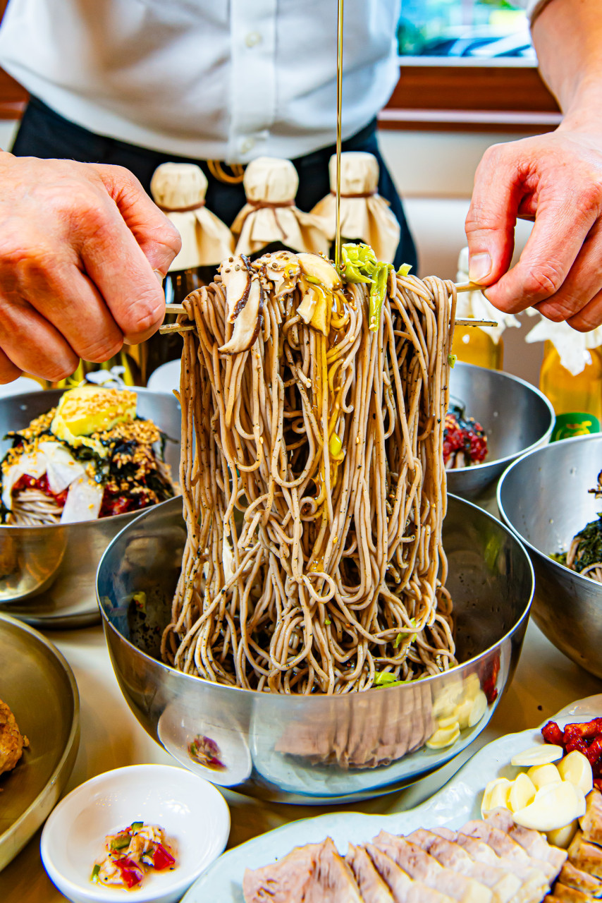 직접 방앗간에서 짠 들기름이 들어간 막국수는 일반적인 막국수와는 차원이 다르더라고요. 입에 넣자마자 들기름 특유의 고소한 향이 퍼지는데, 담백하고 깔끔한 면발과 너무 잘 어울려요. 다대기를 추가해서 매콤하게 즐길 수도 있으니 취향에 따라 조절 가능!