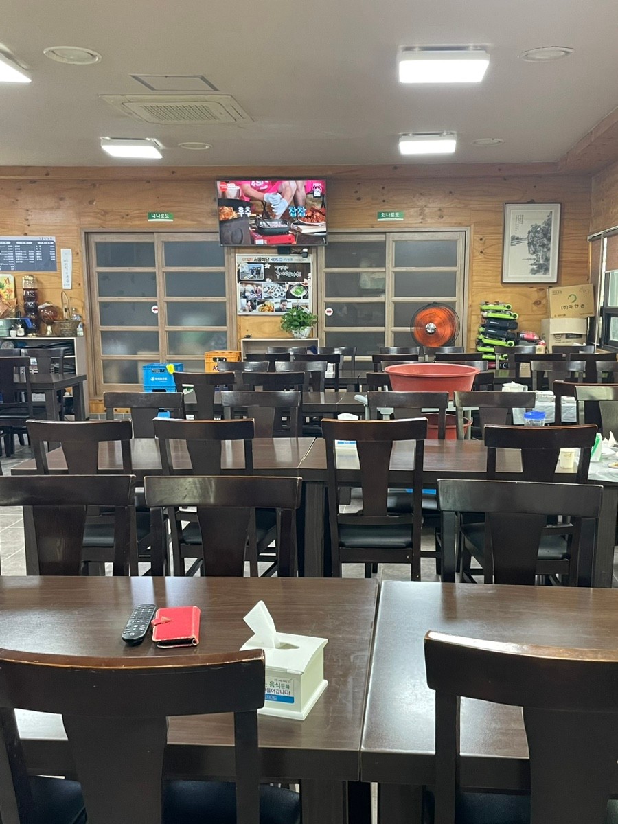 외관은 소박하지만 정감 있는 시골식당의 모습이에요. 세월의 흔적이 묻어나는 간판과 전형적인 ‘맛집’의 분위기가 느껴지죠. 내부는 깔끔하게 정돈되어 있으며 테이블 간 간격도 넉넉해요. 단체 손님을 수용할 수 있는 구조라 가족모임, 동호회 식사 장소로도 적합해 보였습니다.