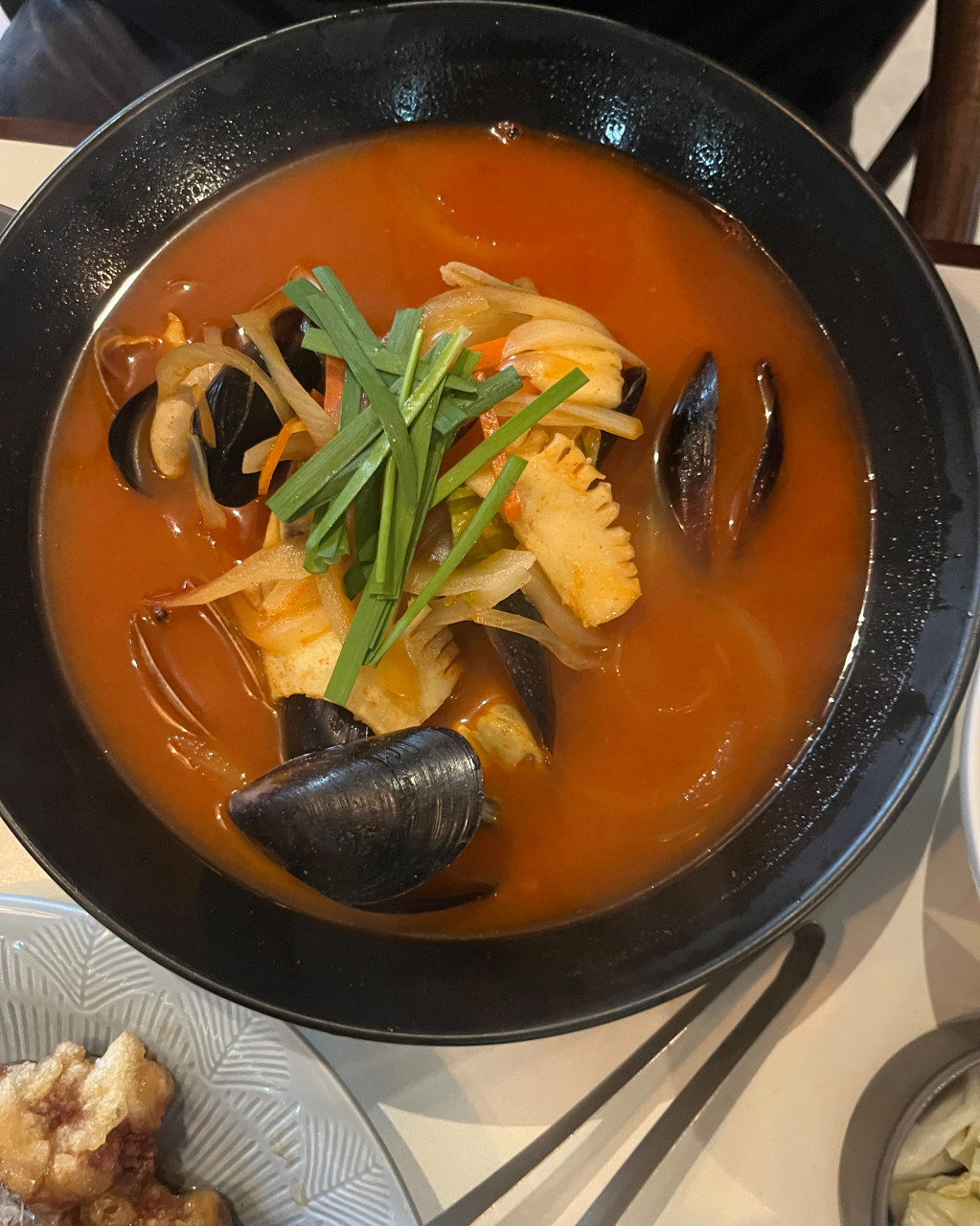 짬뽕 국물은 해산물의 진한 향과 불맛이 어우러져