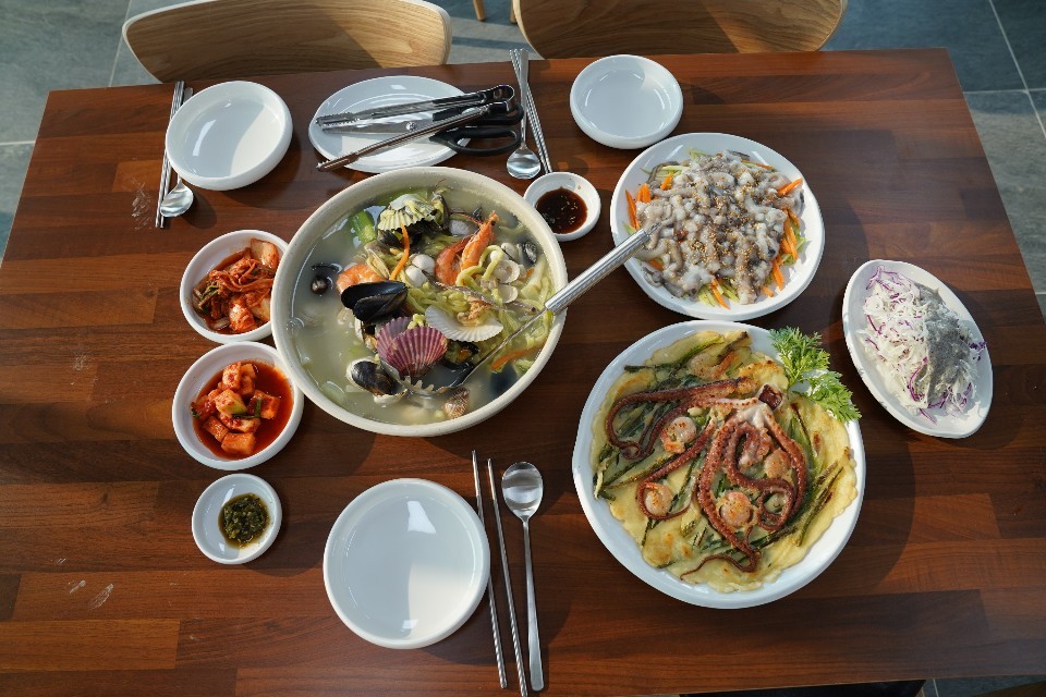 - 해물 칼국수 (홍합, 새우 등 해물 풍미 가득!)