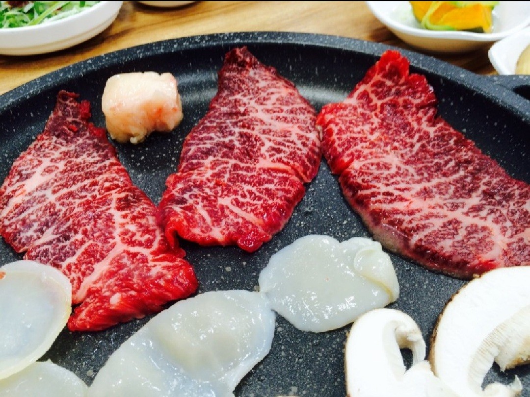 - 대표 메뉴: 한우 + 키조개 + 표고버섯 삼합