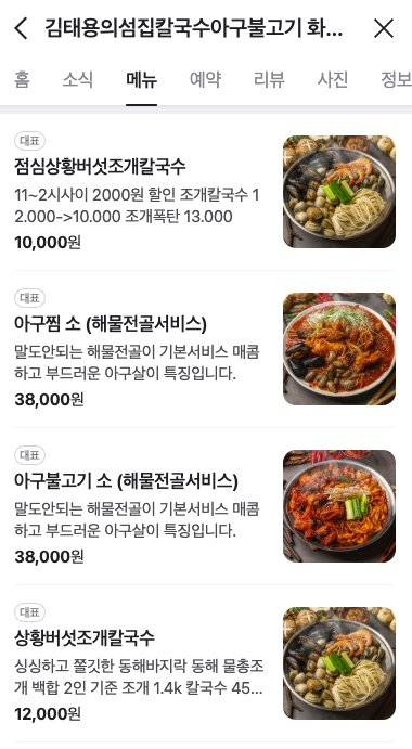 ▶ 김태용의섬집칼국수아구불고기 화성향남점