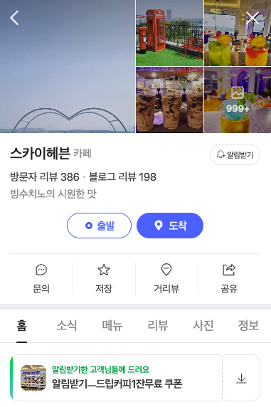 네이버 플레이스에서 알림받기하면 드립커피 1잔이 무료예요!