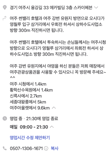 주소/ 경기도 여주시 용강길 33 메카빌딩 3층 스카이헤븐