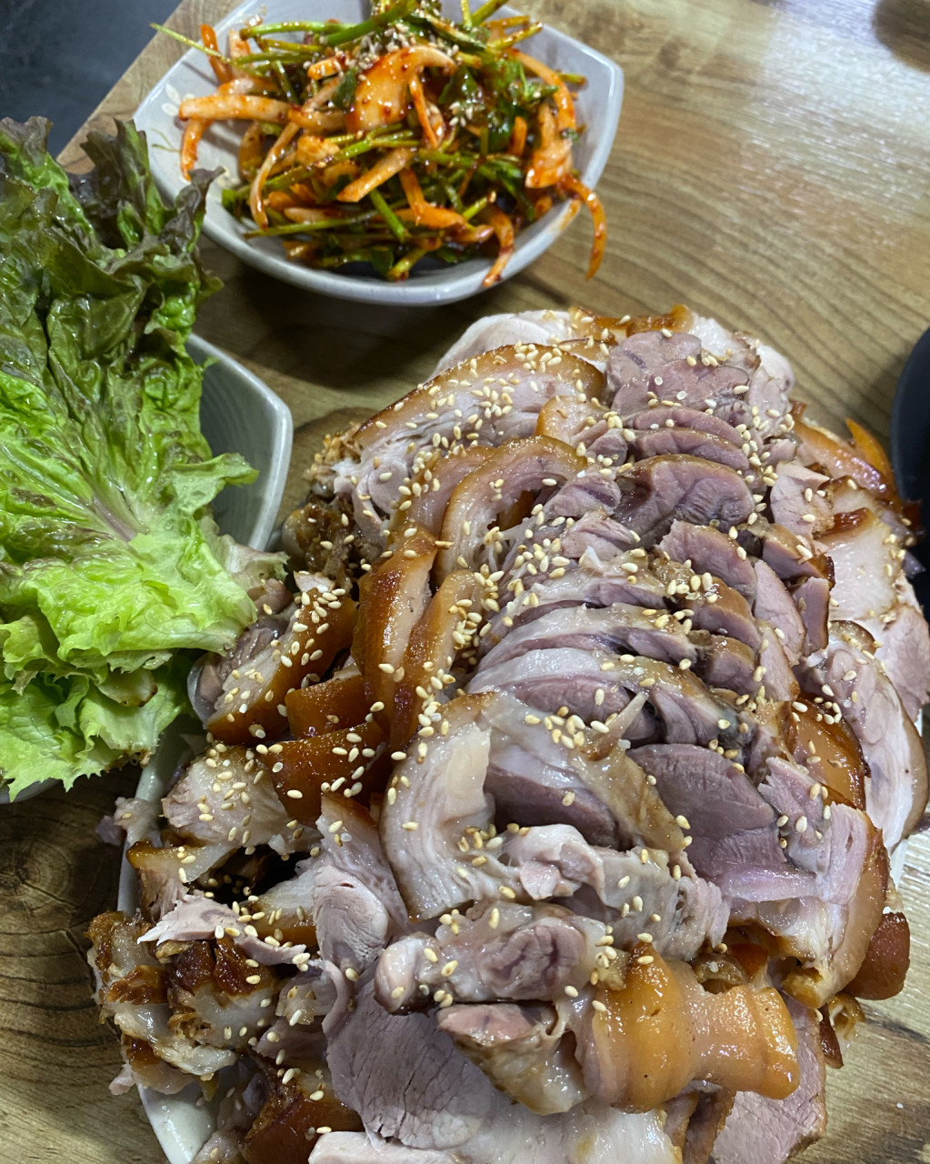 족발은 겉은 쫀득하고 속은 부드러운 식감으로, 잡내 없이 깔끔해요.