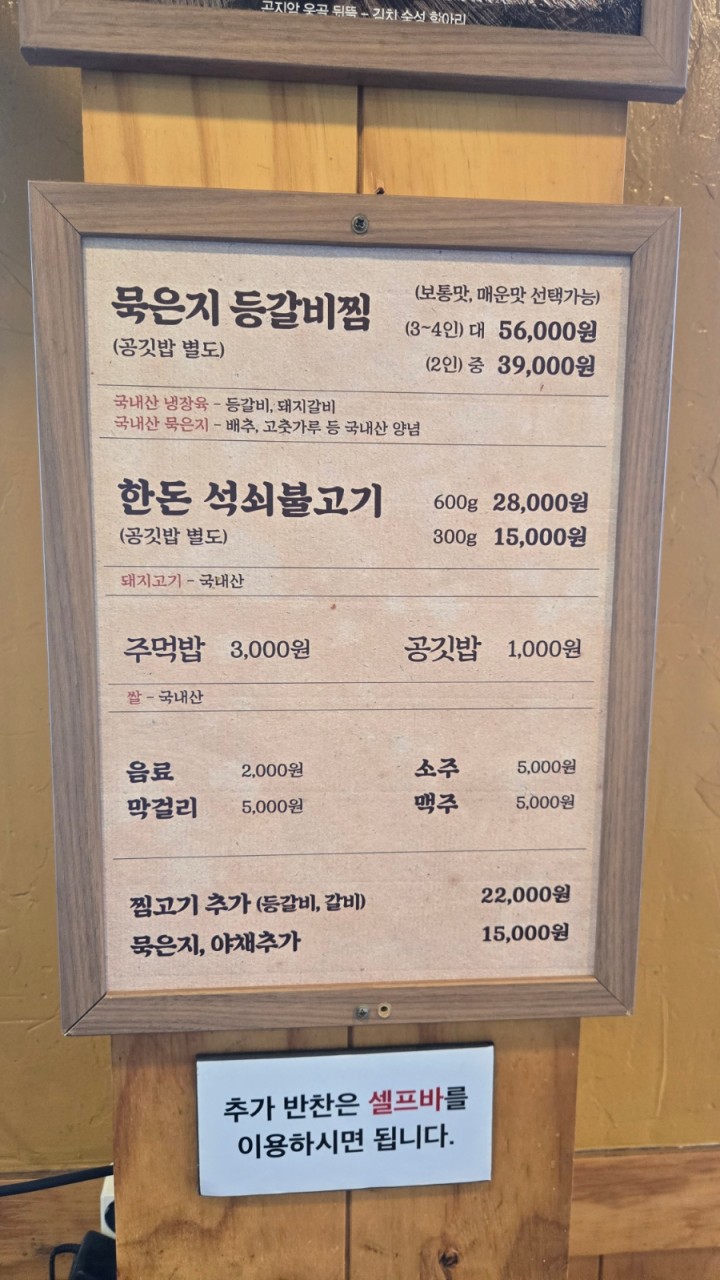 - 묵은지 등갈비찜 (2인 기준 39,000원)