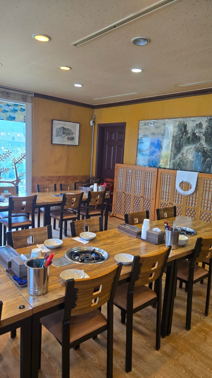 내부는 널찍하고 깔끔하게 정돈되어 있었어요. 테이블 간 간격이 넓어 식사하는 동안 주변 손님들과 간섭 없이 편안하게 즐길 수 있었답니다. 따뜻한 조명과 벽면 장식들이 아늑한 분위기를 더해주어, 전반적으로 정성스럽게 관리된 느낌이었어요.