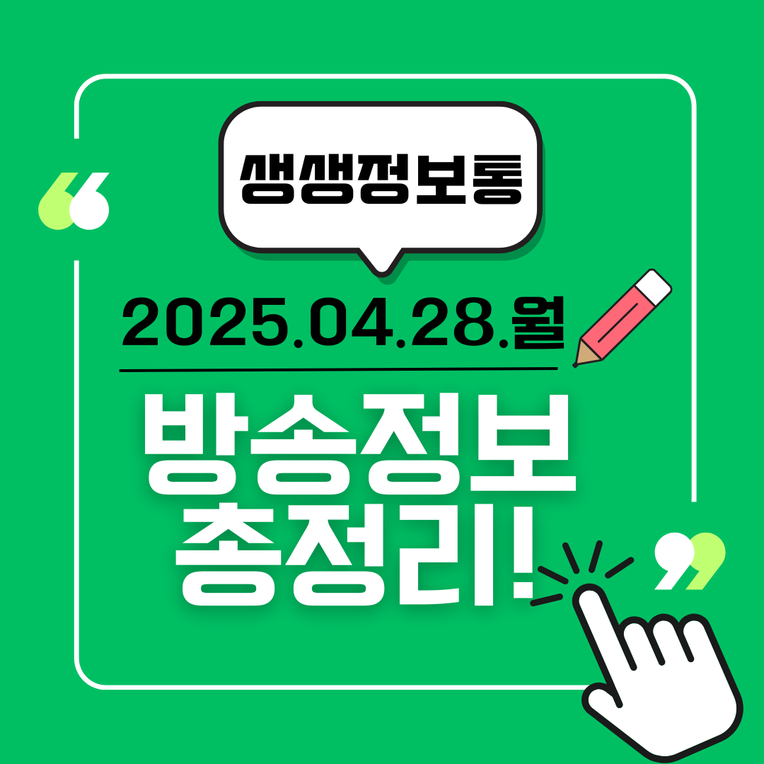 | [2TV 생생정보 2281회] 4월 29일 화요일 방송 정보 총정리! (1) | 2025.04.29 |