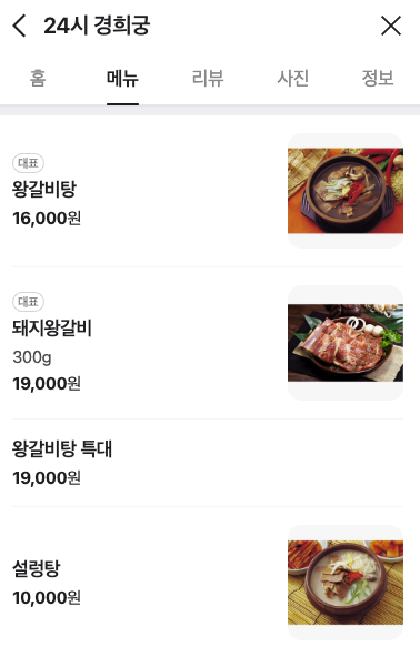 - 왕갈비탕 (16,000원):