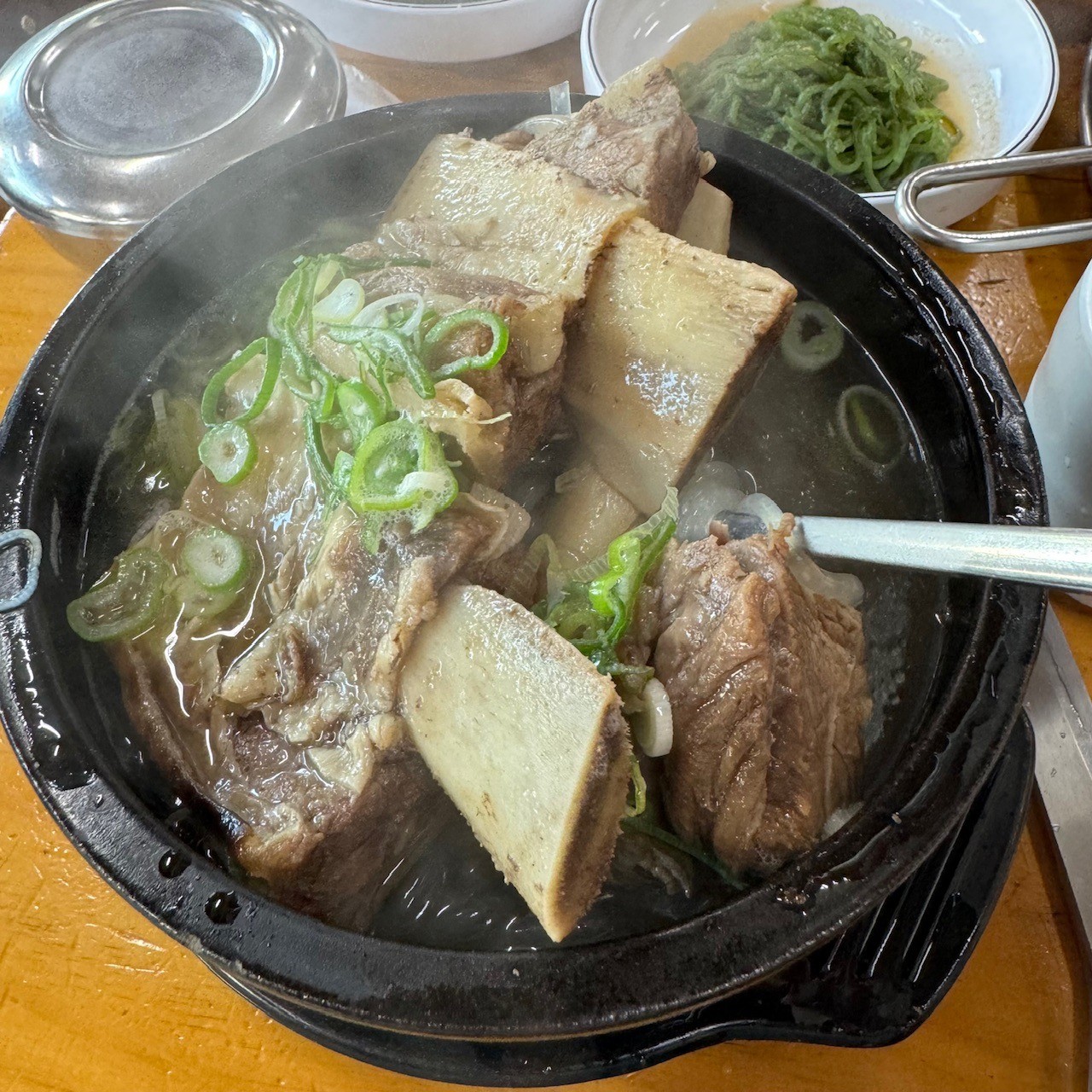 맑고 깊은 국물, 부드럽게 떨어지는 갈비살이 일품! 뼈에서 살이 술술 빠져서 먹기 편했어요. 국물이 깔끔하면서도 진한 맛이 남아 감동적이었습니다. - 기본 반찬: