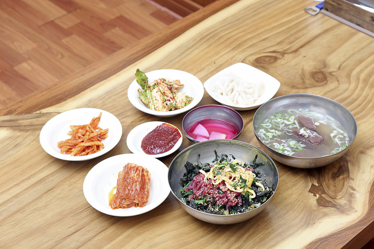 이곳의 시그니처는 단연 ‘육회비빔밥 선지국’입니다.