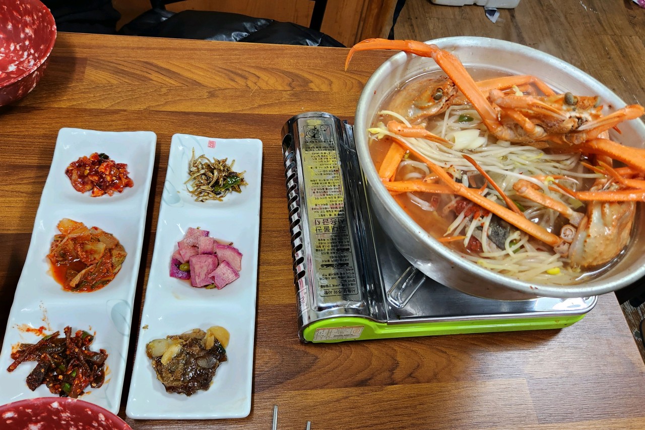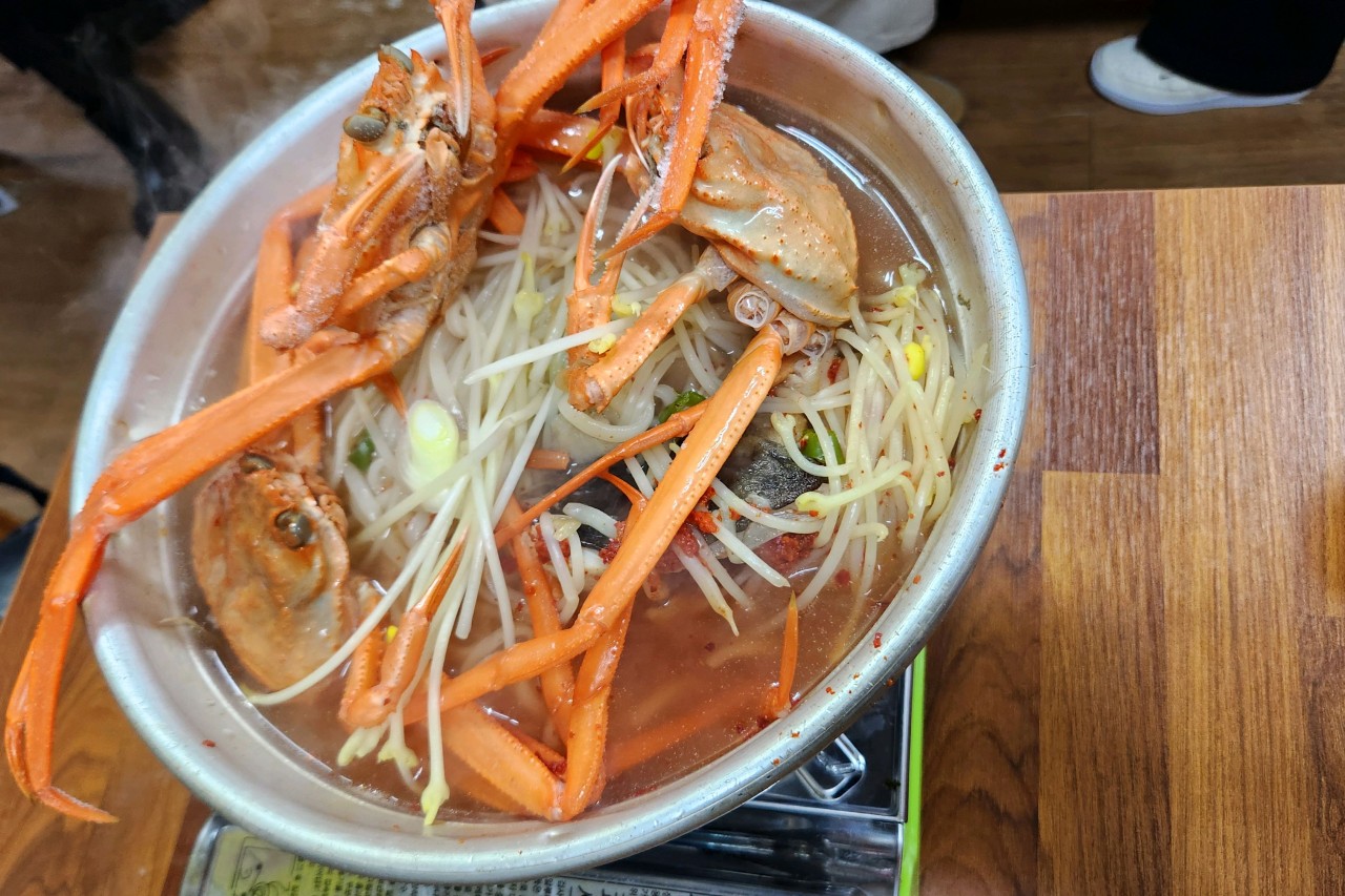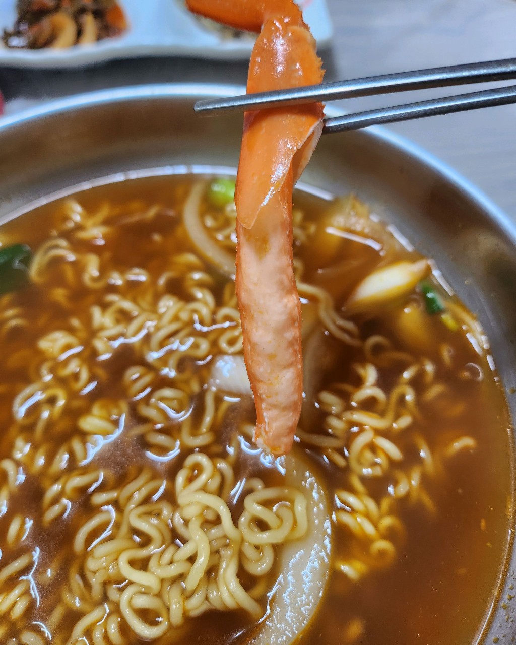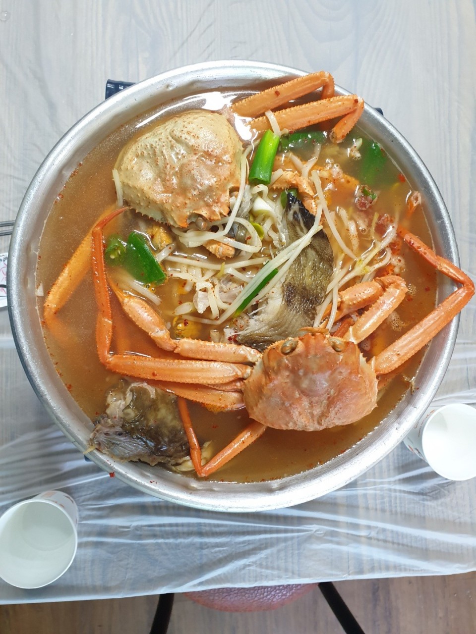 - 구성: 홍게, 장치(생선), 콩나물, 매콤한 양념, 국수