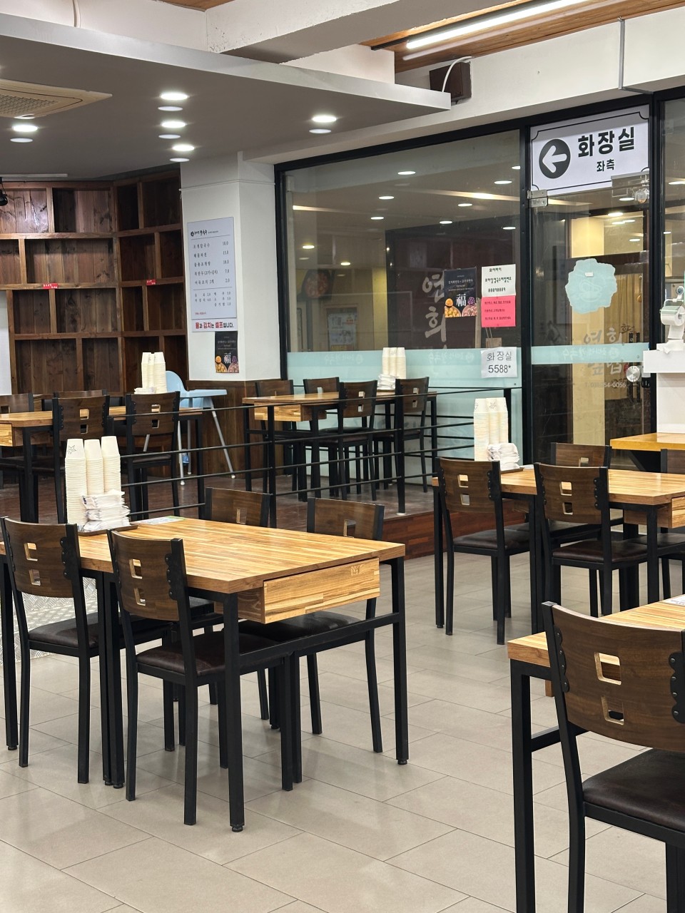내부는 밝고 환하며 테이블 간 간격도 넉넉해