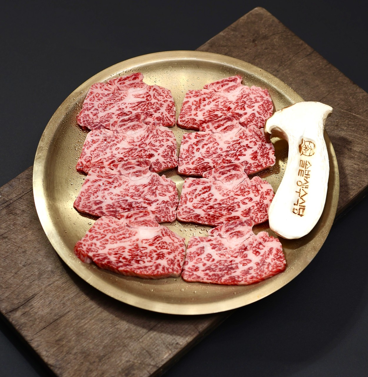 돌판에 구워 먹는 고기는 윤기 자르르~ 육즙 가득.