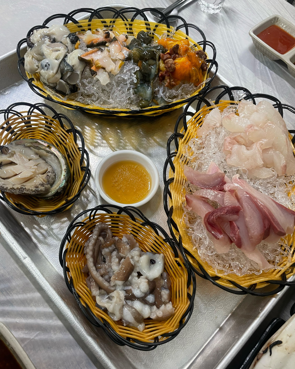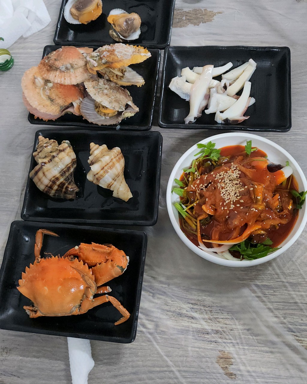 이곳은 ‘한상차림’ 형태로 메뉴가 구성돼 있어서 별도 주문 없이도 다양한 해산물을 즐길 수 있어요. 대표적으로 멸치회, 전복숙회, 해삼물회, 멍게비빔밥 등 통영 특유의 해산물들이 기본 구성으로 제공되고요, 식사는 1인 25,000원에 즐길 수 있어요. 단, 현금 결제만 가능하다는 점과 최소 2인 이상 주문이 가능한 점은 참고하셔야 해요.