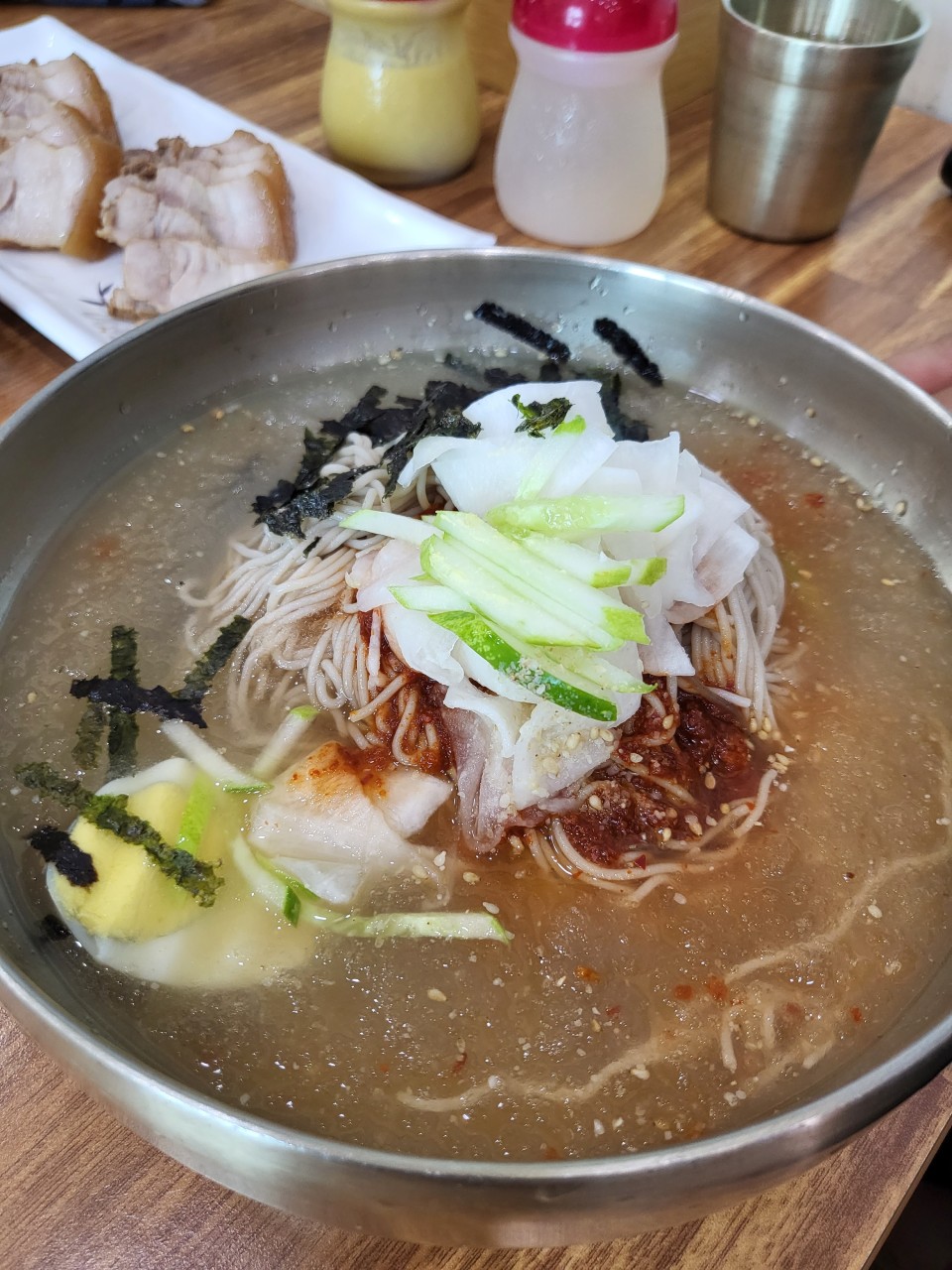 기본으로 나오는 살얼음 동치미 육수도 별미라 더위에 최고랍니다.