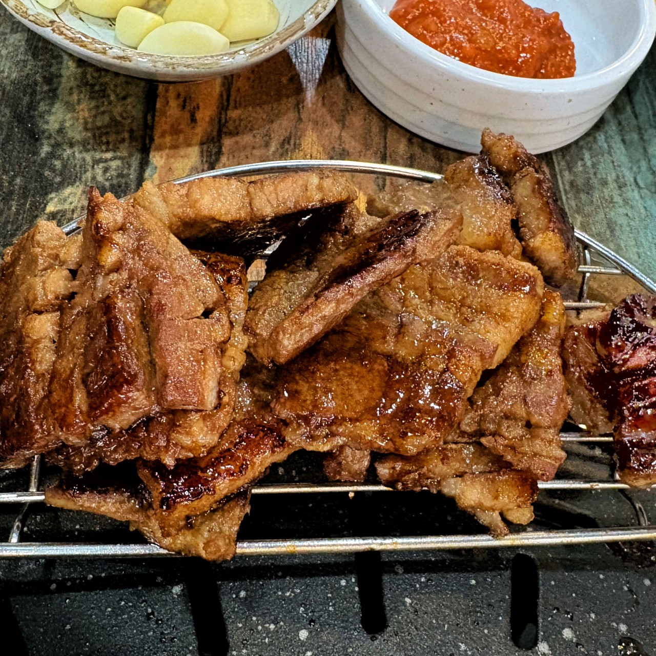 고기는 주문 즉시 손질되어 제공되며, 양념은 매콤달콤하면서 은은한 불향이 매력적이었어요.