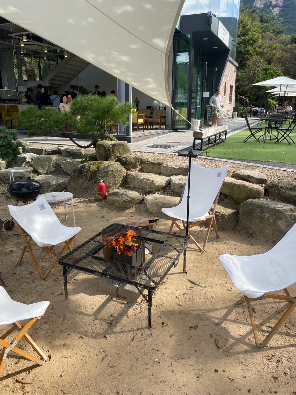야외 테이블, 불멍 공간, 반려견 동반 구역이 아기자기하게 꾸며져 있었고요,