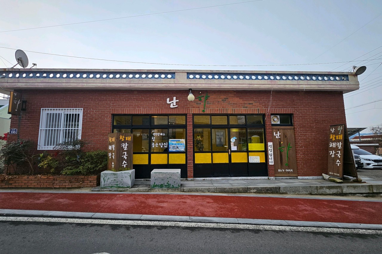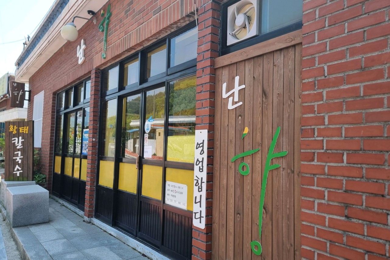 남해 난향은 황태칼국수 단일 메뉴로 지역 내 입소문을 탄 깔끔한 한식 전문점이다.