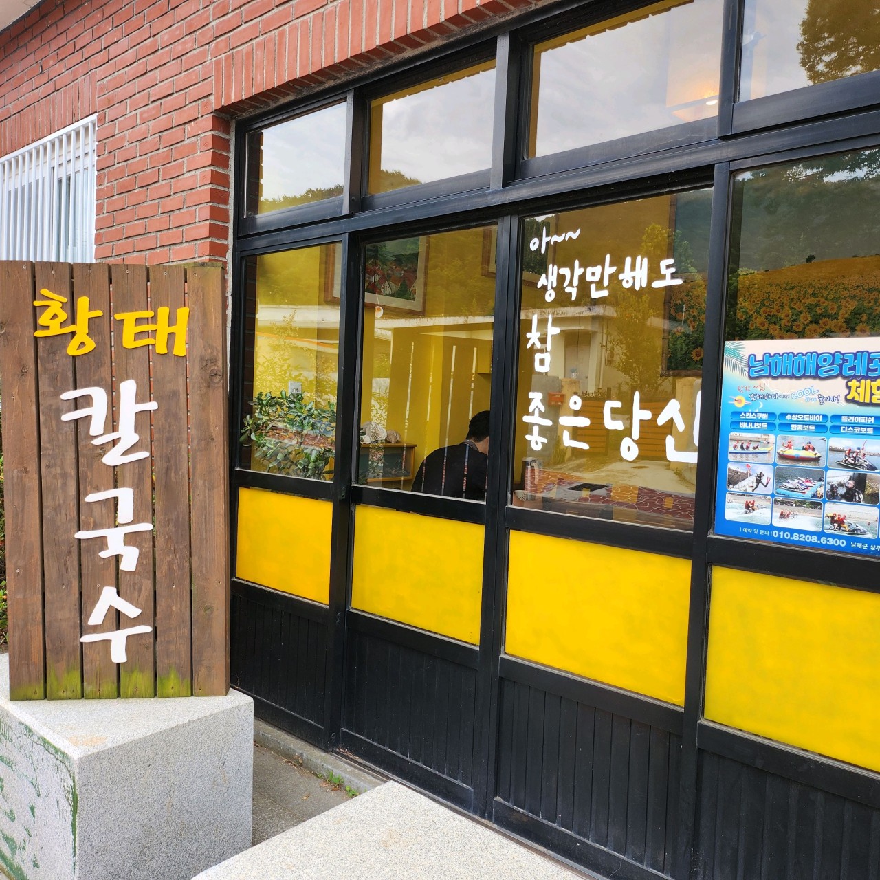 식당 외관은 남해를 상징하는 유자색 계열의 밝은 노란색 간판이 인상적이다.