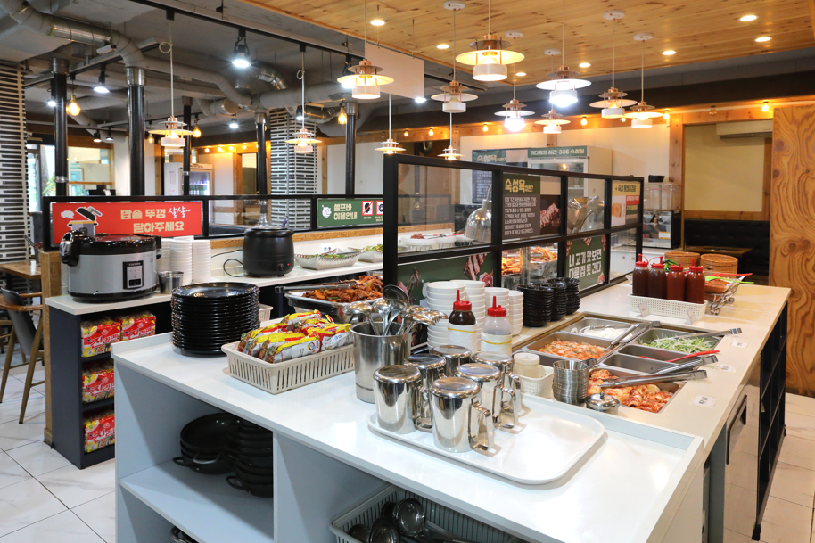 또한, 샐러드바가 함께 운영되어 신선한 채소와 반찬,