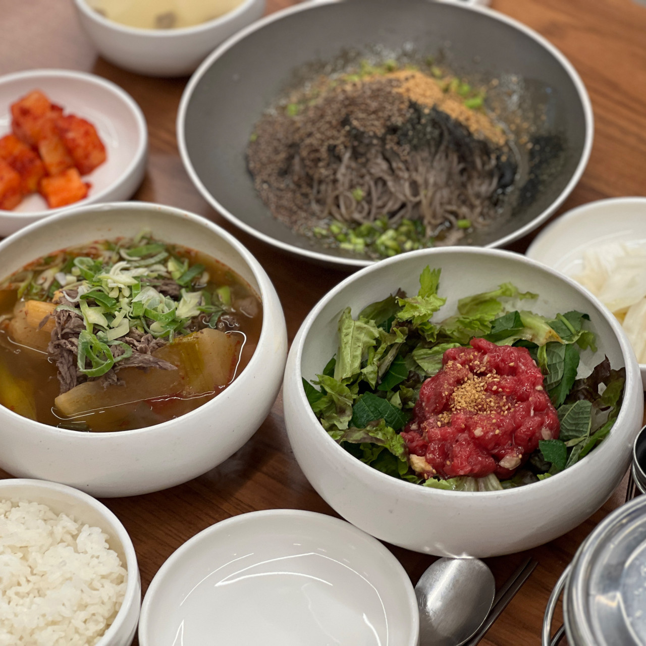 육회비빔밥, 육전, 들깨주먹밥, 온면(안동국시) 등으로