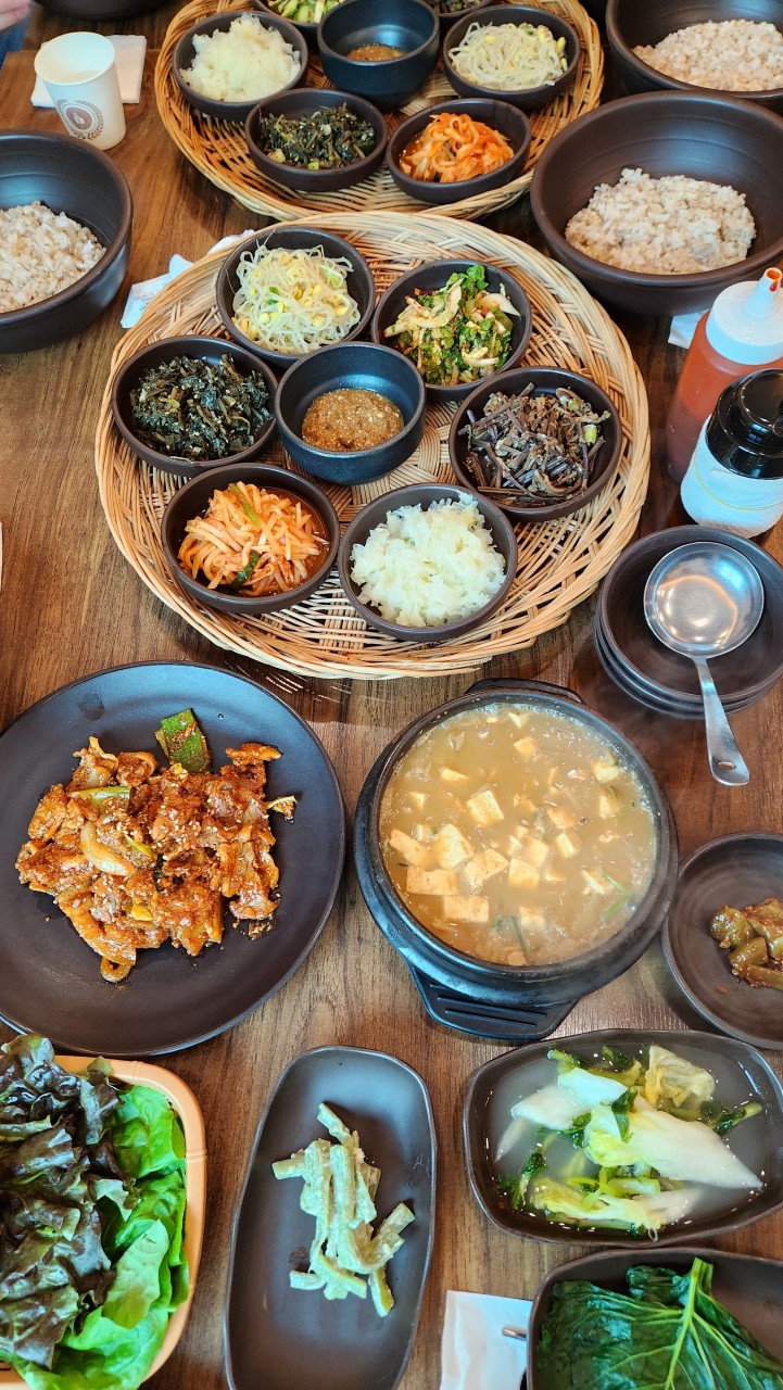 청국장, 보리밥, 제육볶음 등 건강한 식재료를 사용한 정성 가득한 밥상을 제공하며,
