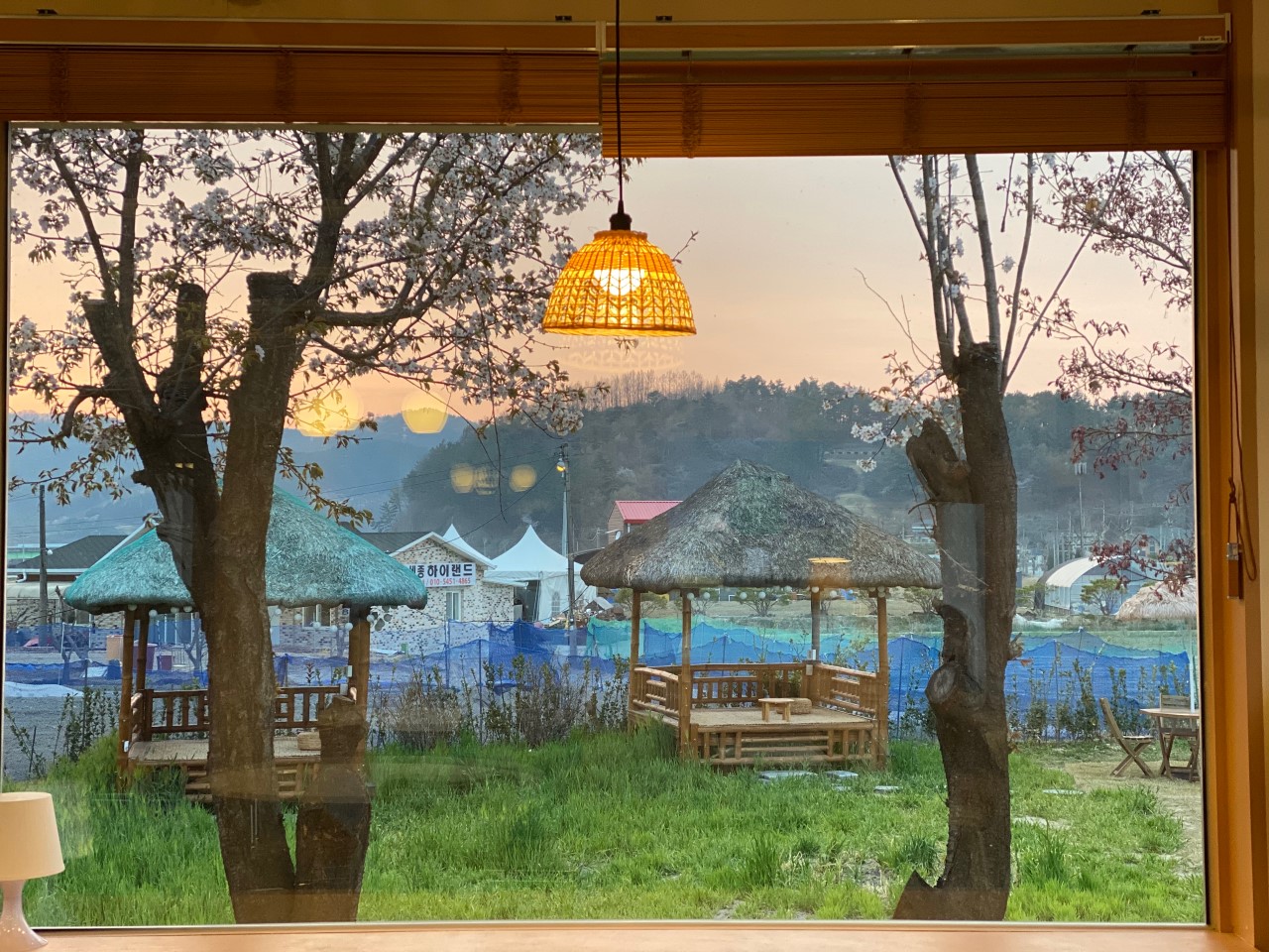 야외 공간은 나무 그늘 아래 정자 형태의 좌석도 마련되어 있어