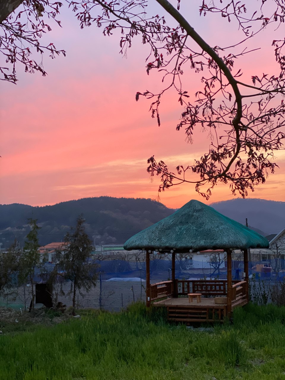 야외 공간은 나무 그늘 아래 정자 형태의 좌석도 마련되어 있어