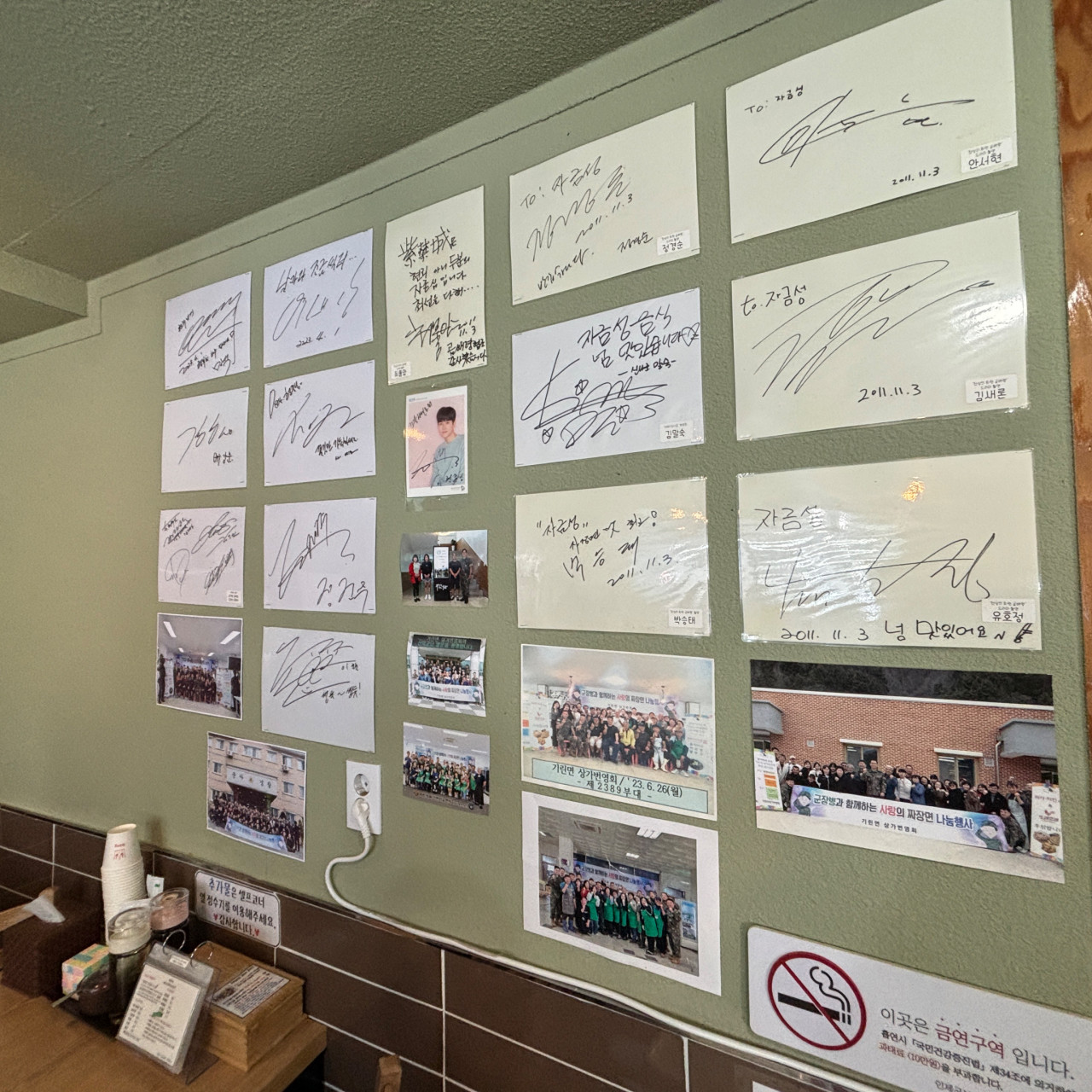 매장 곳곳에는 방문객들의 메모, 연예인 사인이 부착돼 있어