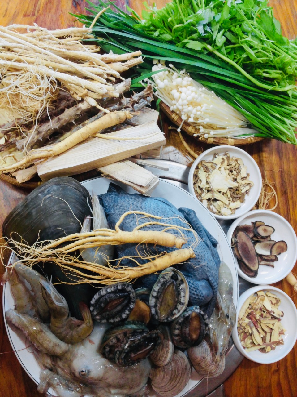주요 구성은 오골계, 닭, 문어, 전복, 새우 등으로
