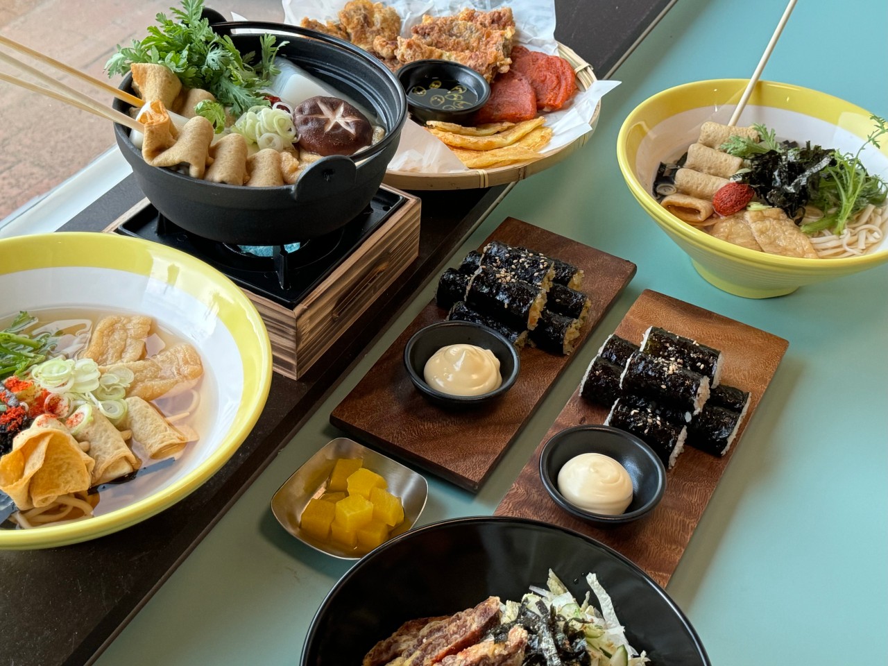 팝업 운영 기간에는 **꿈돌이 라면(쇠고기맛 4,500원 / 해물짬뽕맛 5,500원)**이 메인이고, 참기름 어묵김밥, 가락국수 등 간단하지만 매력적인 메뉴가 준비되어 있어요. 음료도 사이다, 콜라부터 하이볼, 막걸리까지 다양하게 선택 가능합니다. 무엇보다 라면 속 건더기와 스프에도 꿈돌이 캐릭터가 새겨져 있어 보는 재미까지 더했어요.