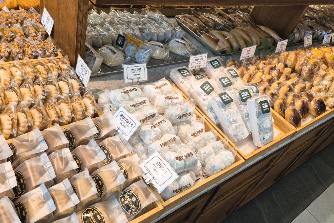 내부는 꽤 넓고 손님들로 붐비는 활기찬 분위기였어요. 특히 주말에는 사람이 많아 붐비지만, 평일 낮에 방문하면 조금 더 여유롭게 빵을 고를 수 있습니다.