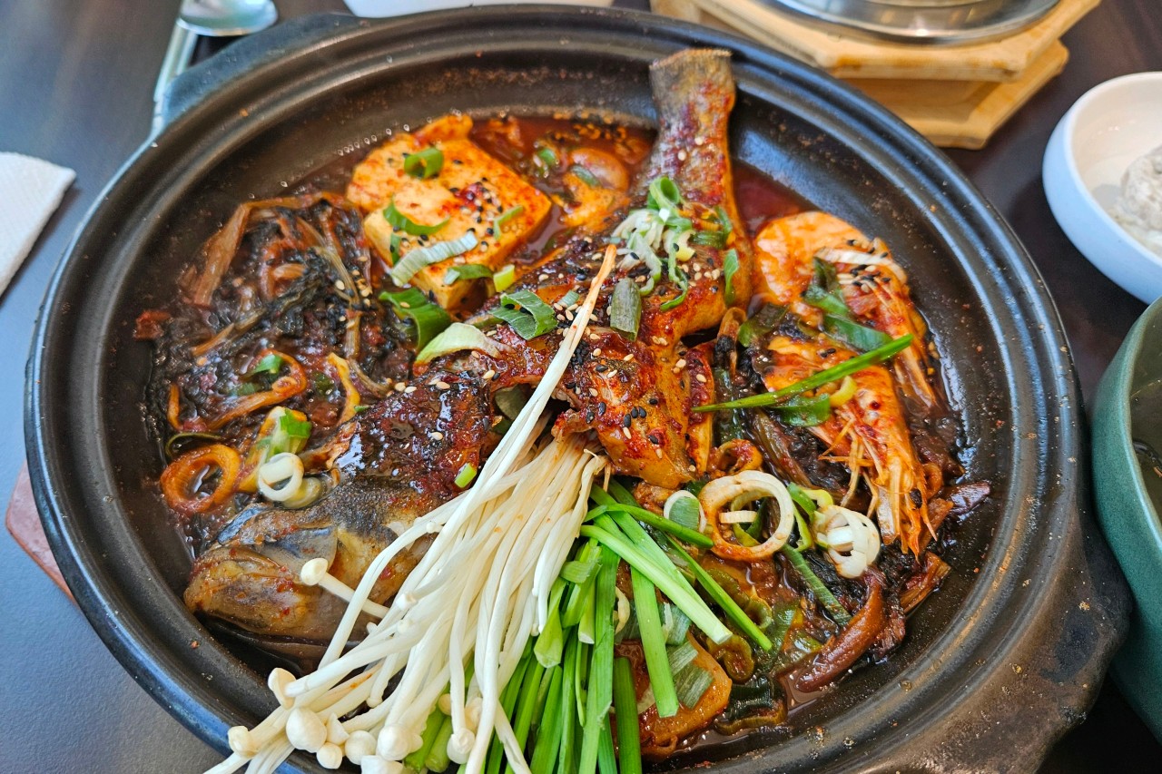 가장 인기 있는 메뉴는 단연 통우럭조림 세트예요. 제가 먹은 B세트(28,000원)는 반찬부터 메인까지 알차게 구성돼 있었습니다.