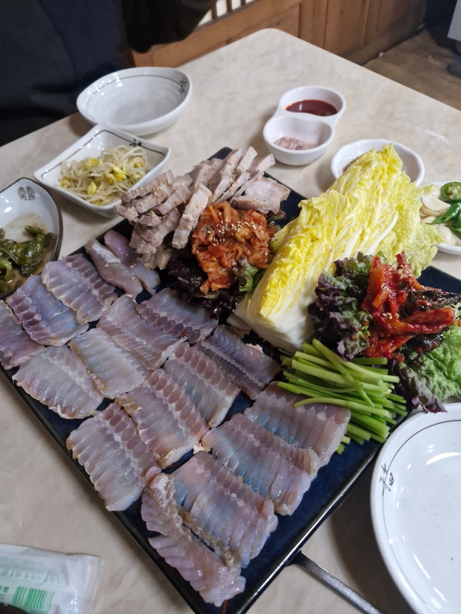 대표 메뉴 – 홍어삼합 + 열무비빔밥 + 된장찌개